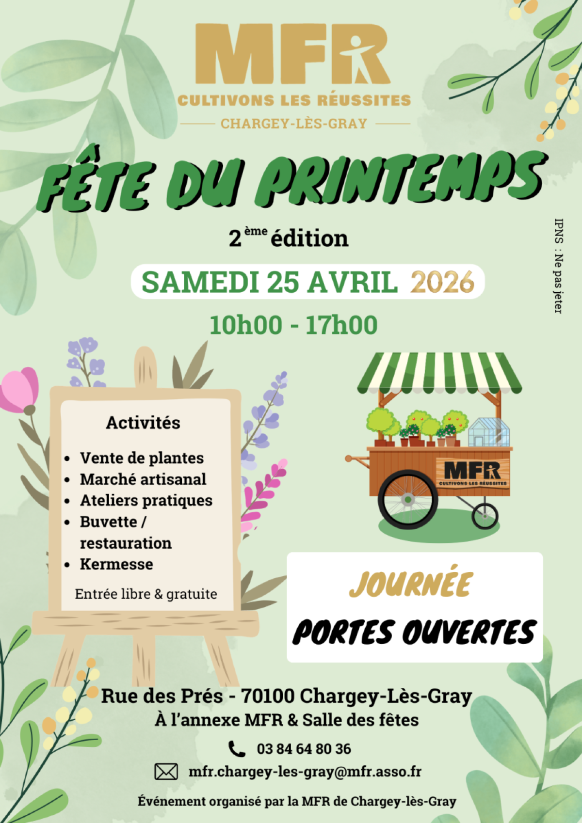 Date : samedi 25 avril 2026 Horaire : 10h à 17h Tarifs : gratuit Adresse : Rue des Prés 70100 Chargey-lès-Gray Le site internet : MFR Chargey-lès-Gray La page facebook : MFR Chargey-lès-Gray